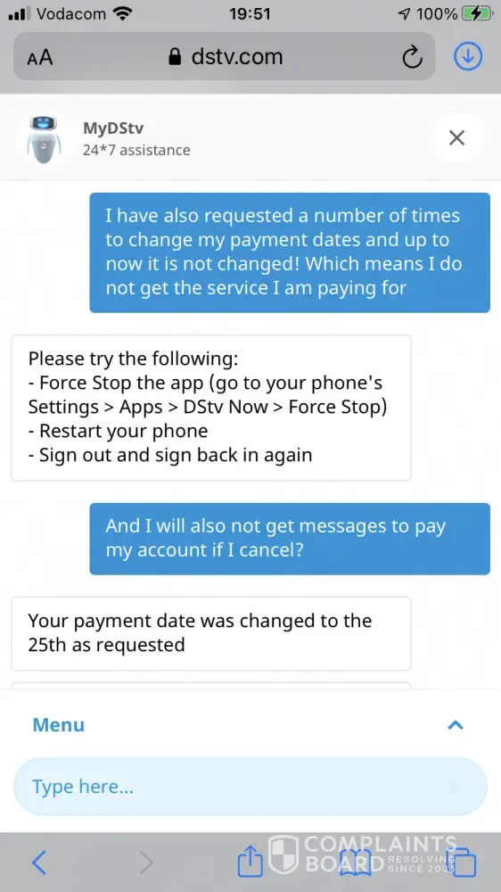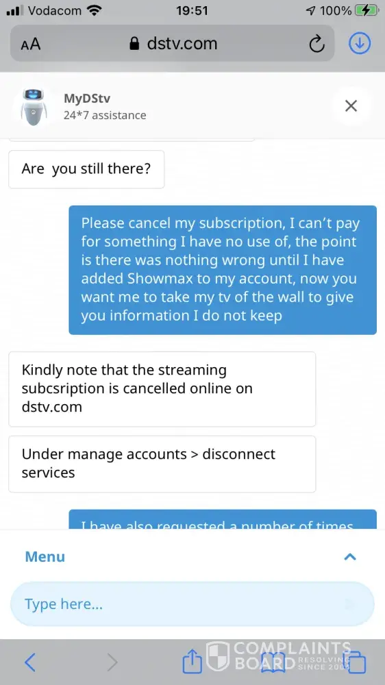 Good day, I would like to lodge a formal complaint for dstv SA. I have an issue of billing since the 4th of August and it still has not been resolved to til today. I have sent numerous emails and called over 10 times but still have no answer. I have requested to speak to a manager and the consultants always say there is no manager. I have tried social media pages and still no assistance. My cell phone number is [protected].