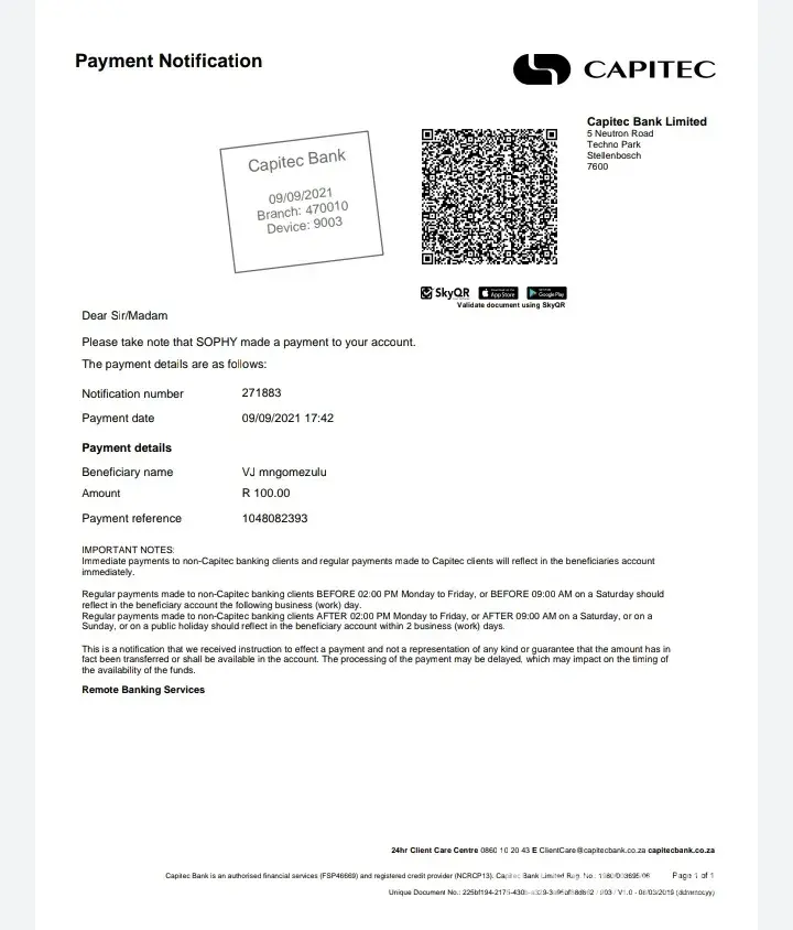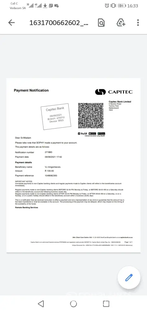 Desired outcome: I would like my refund of R746 as attached paid to me asap. I do not feel comfortable sending my bank statement or ID. they have my details. i want no one to contact me asking for info.
