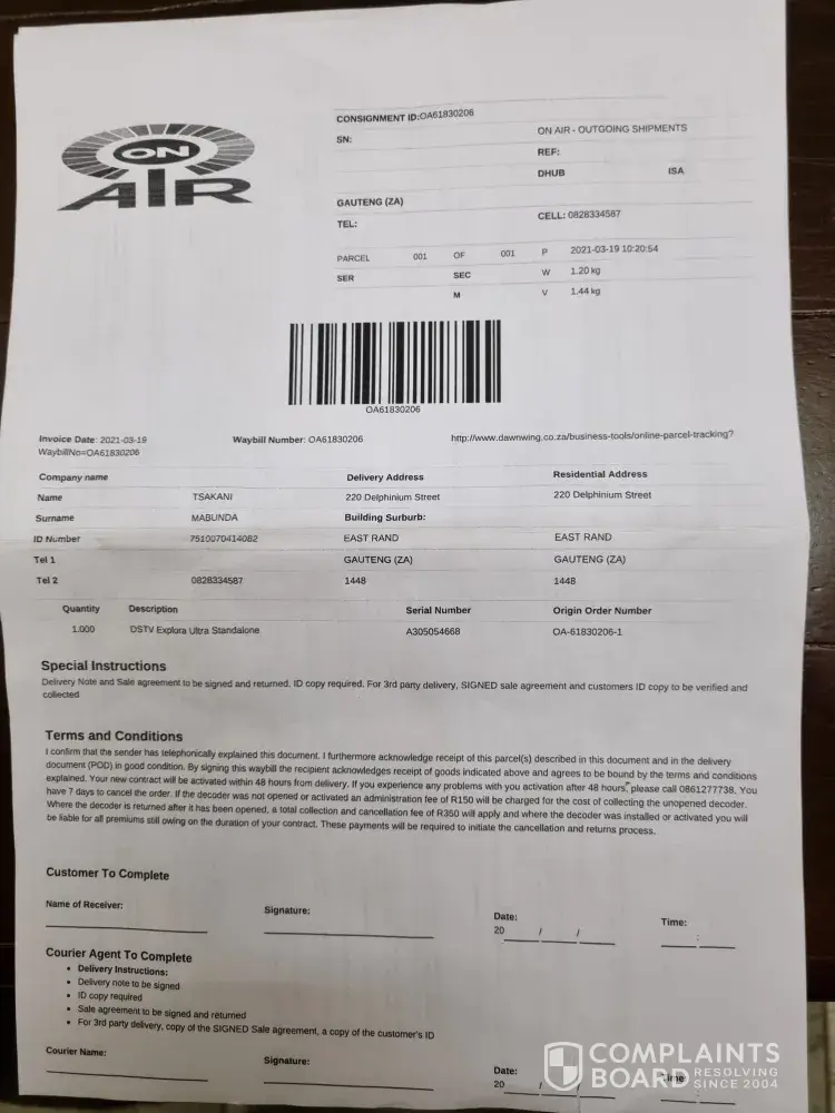 I was called by a lady claiming to be a consultant from multichoice with all my profile details from multichoice claiming to give me a special package of DSTV Explora, Netflix and Showmax to addition TV that I have that are not smart TV at R179 package at first I wS so reluctant she keeps on calling me until I was convinced at April, the decoder was delivered and I called multichoice and they told me they know nothing about the special offer and no one Called me till today, the packaging didn't even have contacts or address for On Air, the debit went through and I reverse the debit order so they can pay attention to me and indeed they called wanted to know why the debit order didn't go through and I told them why and they put me through customer service to make a complain Ref No [protected]-171908 they promised to contact me within 2 days they are still investigating, here comes the following months the debit order went through again and I reverse it they called again put me through customer service I quoted the same ref no this time they promised to come and collect the decoder and cancel the contract till today it never happened but the debit order is going through every months. Please assist.
