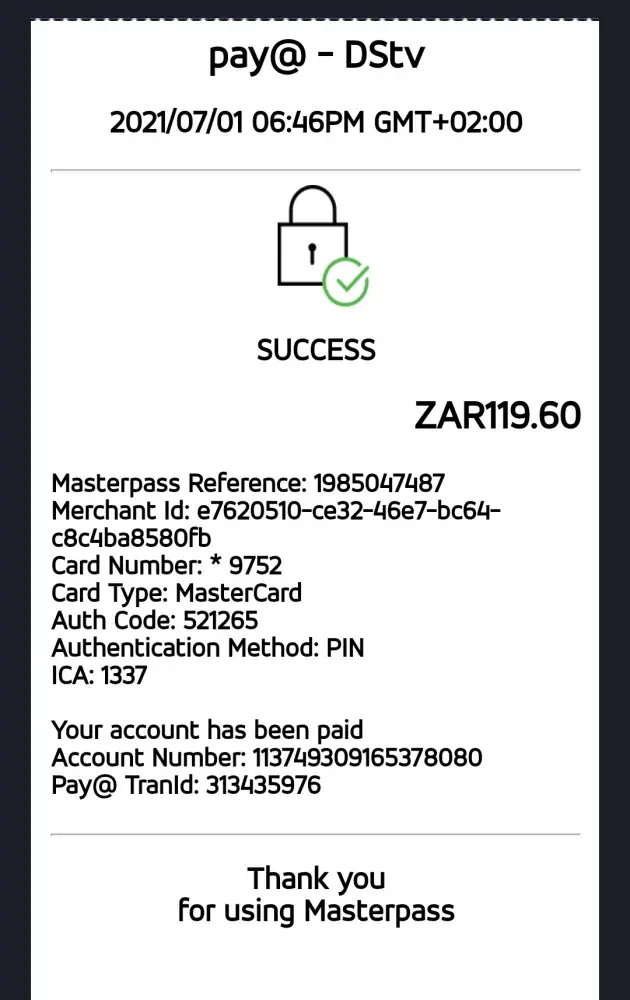 I paid my account on 30/06/2021 amount r319.00 my statement was for r323.00 when I went to pay it reflected that I must only pay r319.00 I then got a notification today 06/07/2021 to say my account was not paid and my services was suspended and I had to pay another amount of r146.26. I then made the payment.