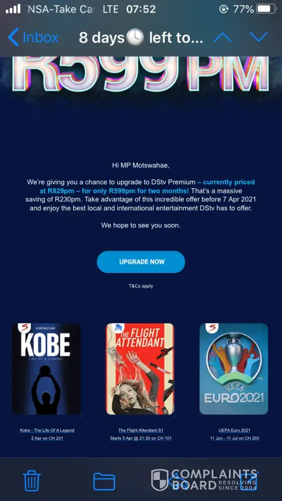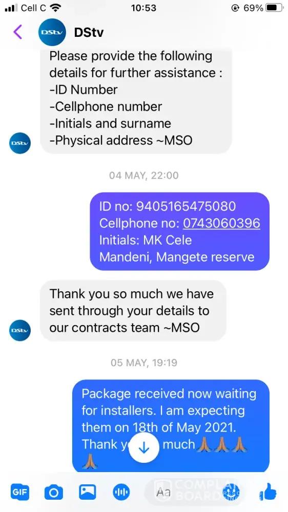 On 5th of May 2021 I requested the pricelock 24months contract but up until today 1st of June 2021 I have not received my decoder. I have been calling DSTV consultants for several times but nothing happening. They all telling me to wait. I can't wait anymore, I need to know if this installation will ever happen or not. On the 18th May 2021 the consultants promise me that installers will come to set up the decoder and she even set up the time. I even stayed home the whole to make show they find me when they come. There attachments to prove what I am saying. The sad thing is I keep on wasting my airtime calling you but no progress regarding this request.