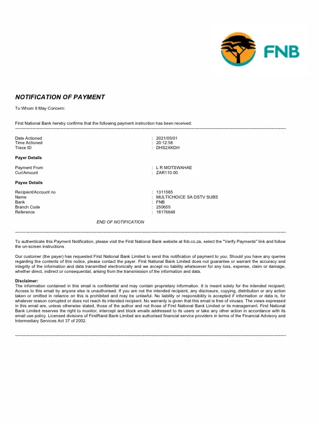 Hi, My name is Manqoba Mavimbela ID No [protected]. Customer no [protected]. In my 19 I made a pay ment to multichoice through multichoice app. Using my credit card. After few hours waiting the account was still not activated. I then later on the same day went to picknpay till to make another transaction this time with my debit card. Both transactions went through and do appear on my bank statements. But multichoice agent say they only see one transaction the one I made at picknpay. Now to prove that I did make a payment with my credit card I must produce proof In a pdf document stating date, time, amount and reference. I went to the bank several times to ask for such proof, but they say since the transaction was not done via their app. i.e Ned App they can not give me proof. The only proof they can give is a bank statement. But multichoice agent say they do not accept bank statements as proof of payments. I have exhausted all means to try and resolve this issue please help.