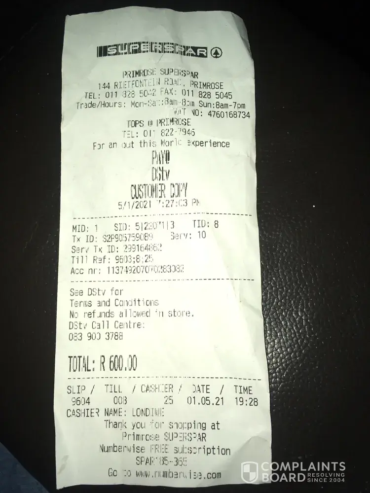 On the 20th of May 2021 I made an internal transfer to the multi choice account number as I have always been doing for years. More than a week after I have made a payment my Dstv viewing was cut.Upon inquiry I was told that the reason for the cut was because I didn't pay my Dstv account and that I should send them a proof to show that I have indeed made a payment, which I did.I called their helpline repeatedly, spending over R200 in airtime but nothing happened.The supervisor promised to fix my problem but nothing happened.Nothing was wrong from payment starting from the account number I used to the reference number but I just can't get assistance from Multi choice.So I'm very disappointed in the company.My account number is [protected].