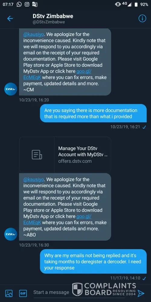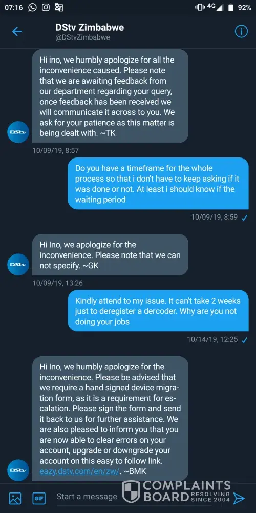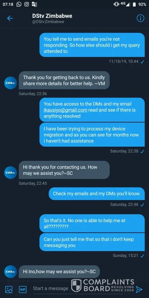 I have been taken back and forth by the customer representatives as they just don't want to resolve my device migration issue. It's been more than 2 months. My Twitter DMs and emails are being ignored. Different people may respond asking me to start the process from the top. I have sent all the required forms but they do not follow up. They make me look stupid. They have access to the messages but they just don't read and i think most of the responses im getting are automated because no one in they're right mind will ask what's the problem i need help with when they see a whole thread of messages that is explaining my request. They just don't care. I'll attach pictures of the messages here.