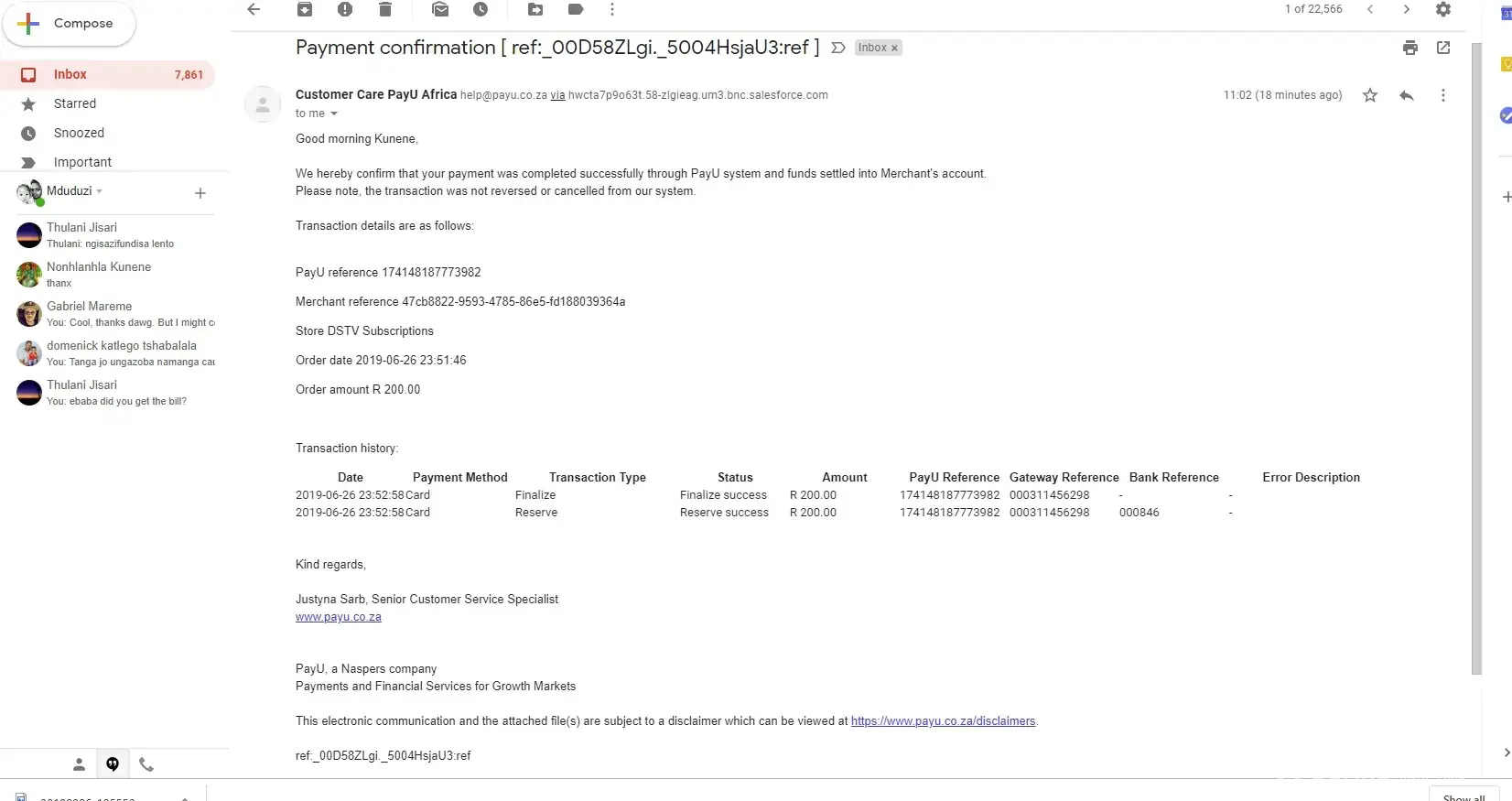 On the 6th of September my dstv was disconnected because your payment systems decided to reverse an amount of R200 which according to one of your consultant "reversed to PAYU so i must contact them". I did and they said no nothing was reversed from their side and they even gave me proof, I then sent it back to your consultant but they did nothing. I phoned again and they still requested the same info and I also attach my bank statement as proof that no R200 landed on my account but still no help. Its been two weeks now without any help and im stuck with a disconnected dstv. Basically ive paid for nothing. Its frustrating and annoying. Can you guys fix this.