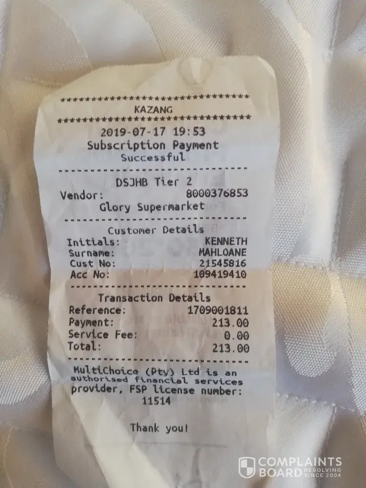 What happened was I paid my subscription at one of the small shops using Kazang machines. After waiting for over an hour for the service to be reactivated, I called Dstv call Centre to make an Enquiry, only to be told that my payment is not reflecting on their system. I made the same Enquiry the following day and was told to send proof of payment, which I did. I was told that the payment is still not reflecting as it sometimes takes 24hrs to do so. Later that day, my service was reactivated and as logic dictates, I assumed the payment was now reflecting.