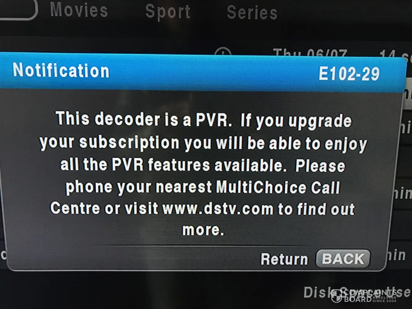 I had DSTV call me to offer the Price Lock Promo. The sales consultant told me that all my services will still remain the same. This is a blatant LIE. Now I get error message E102-29. I dont have any services and now the DAMN thing wants me upgrade my DECODER. To add to insult they want to F!£@(%&$(&%£@ charge me to cancel the DAMN Price Lock and return to my normal services. WHAT @£()!%!)$£*)$£* crap.