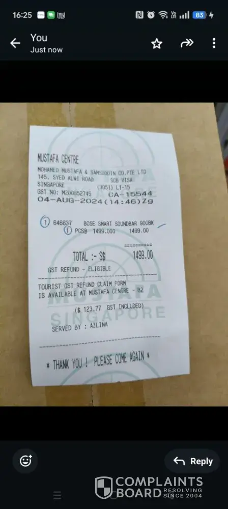 I bought a Bose Soundbar 900 (see photo show its model no and series no) on 4-Aug-24 from Mustafa, I like to swap it to Bose ultra and as Mustafa return $200 extra, because on that day, Ur India sale man misguide us to buy old, even more expensive soundbar 900, he said, 900 is latest one with Wifi while Ultra have no wifi on. Pls consider my request, appreciated your earlier reply. Tks.