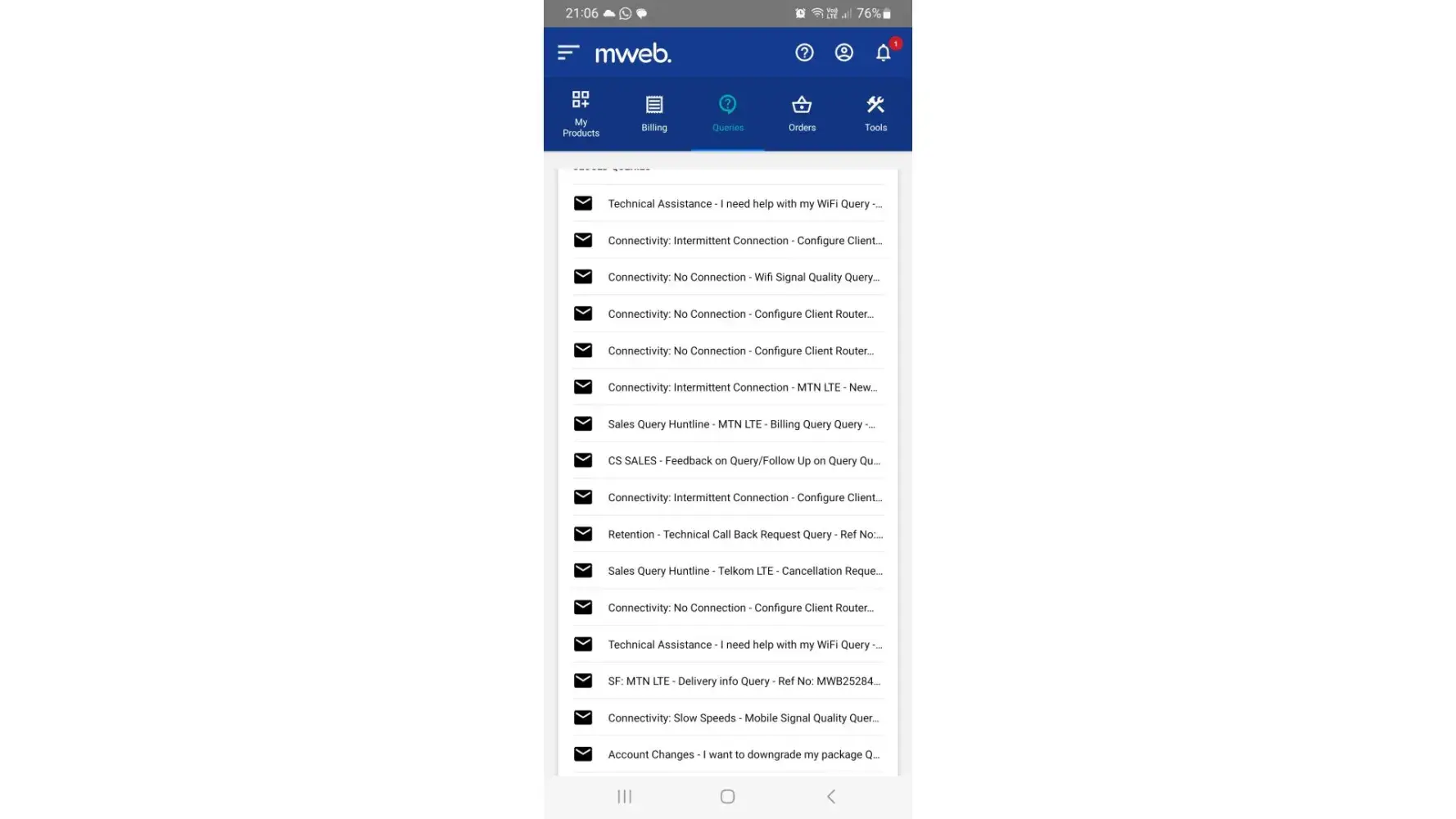 I cannot even begin to tell my frustration regarding the horrible service I have been getting from mweb over the past 2 months. Ever since I changed from telkom to mtn (which I asked and one of agents told me that it's the best).I have been experiencing bad service where the network will just go out. To top all of is when I called numerous times without any help and when my airtime runs out after hours of holding no one bothers to call me. I have lost out of so many hours from work even having to apply for leave and the amount of data I bought just this month alone is more than the subscription I thought is unlimited. I have to pay for the service I'm not getting at the end of the day. You can check how many queries I've logged and no help. Am I supposed to be paying for nonsense for 2 years?