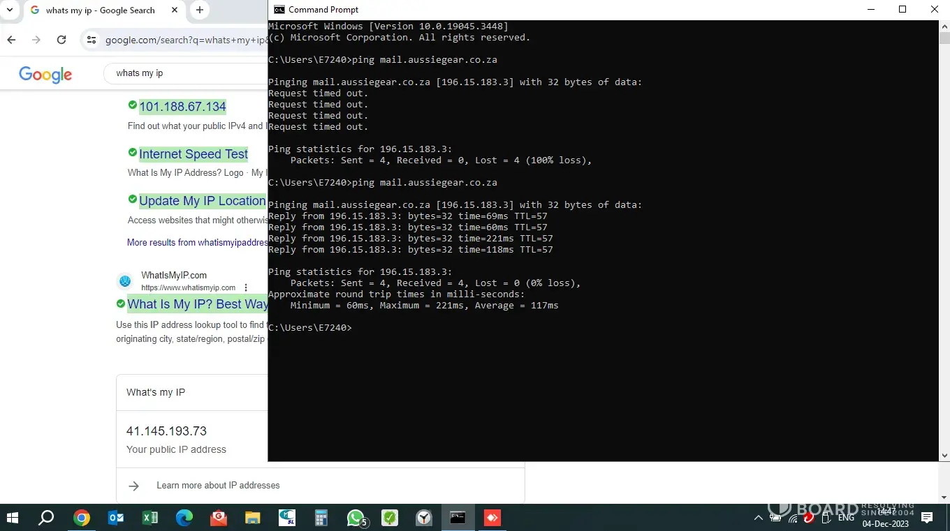 I have attached images of pings I have done to check the server while using my other Telkom data connection - everything fine. Also attached a ping I did while using my mweb data sim - not fine.