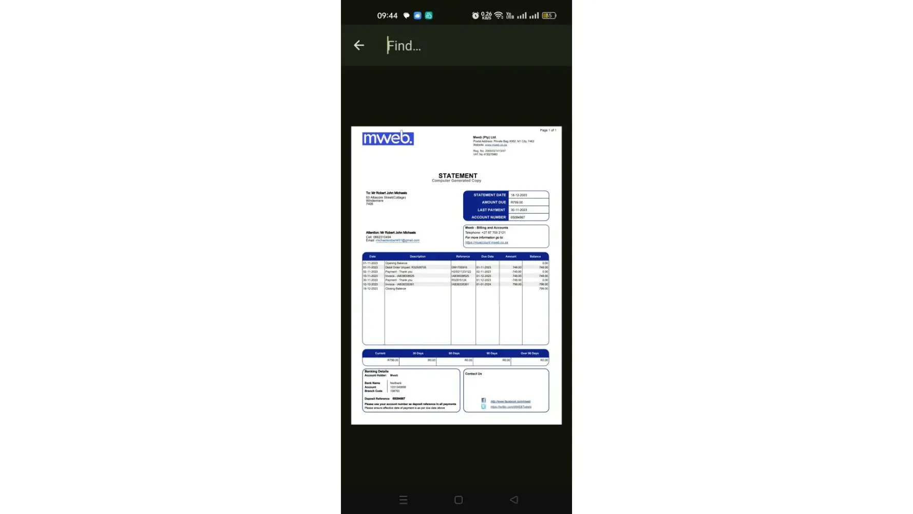 I have a Fiber account with Mweb, it was paid by my employer and was due for cancelation at the end of November, before then I contacted MWEB because I wanted to take over the account. At first, I spoke to a guy who mentioned that he will send me forms to complete my details so that my account is not cancelled...guess what? the forms were never sent to me.