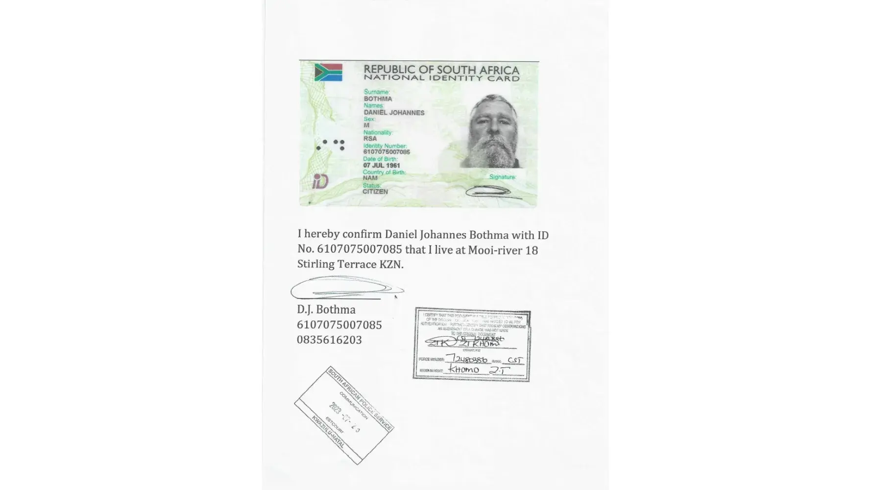 I am Danie Bothma and live in Mooi River, 18 Stirling Terrace, KZN. I logged on to your services and then had to wait for the card. I was informed several times that I needed to be able to hand in an ID Document as well as proof of residency. I explained to the Mweb salesman that I rent the place and don't pay for municipal services because they're included in the price.