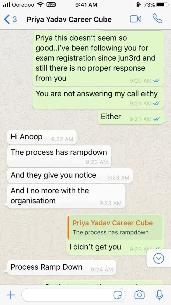 Top of that when I am calling career cube representing then I am not getting any response. Executive from whom I had taken this course is Priya and presently she is avoiding all my calls and watsaap messages.