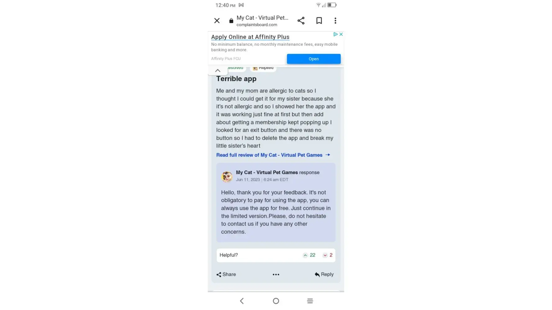 Overview of My Cat - Virtual Pet Games complaint handling