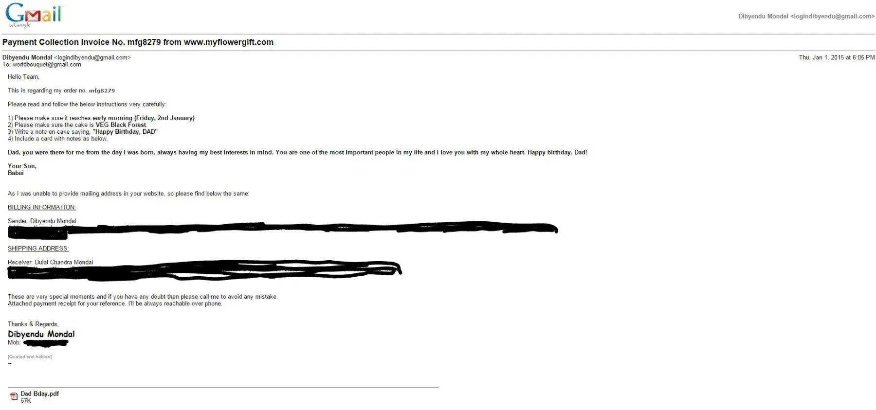 People who are reading this, never ever buy anything from this website (www.myflowergift.com). And if you really wish to buy, then be ready for getting harassment, arrogant behaviour, worst and pathetic service ever..!