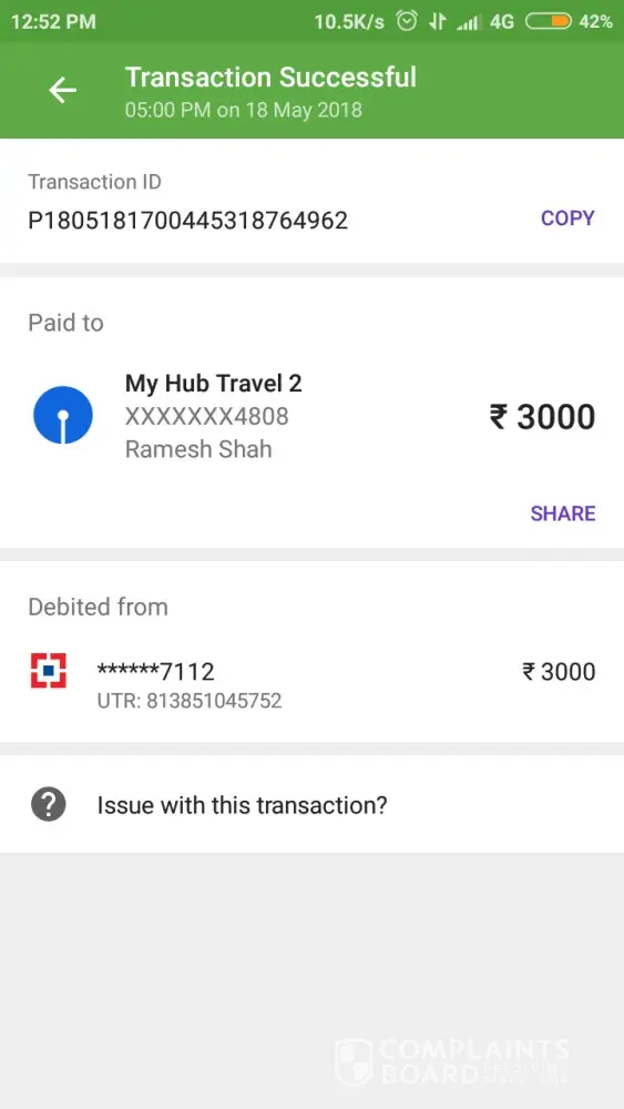 I was not only my hub travel alone it was also preferred by hello travels as they gave me the lead and upon several mails and complains both company never took any steps to get the amount refunded.