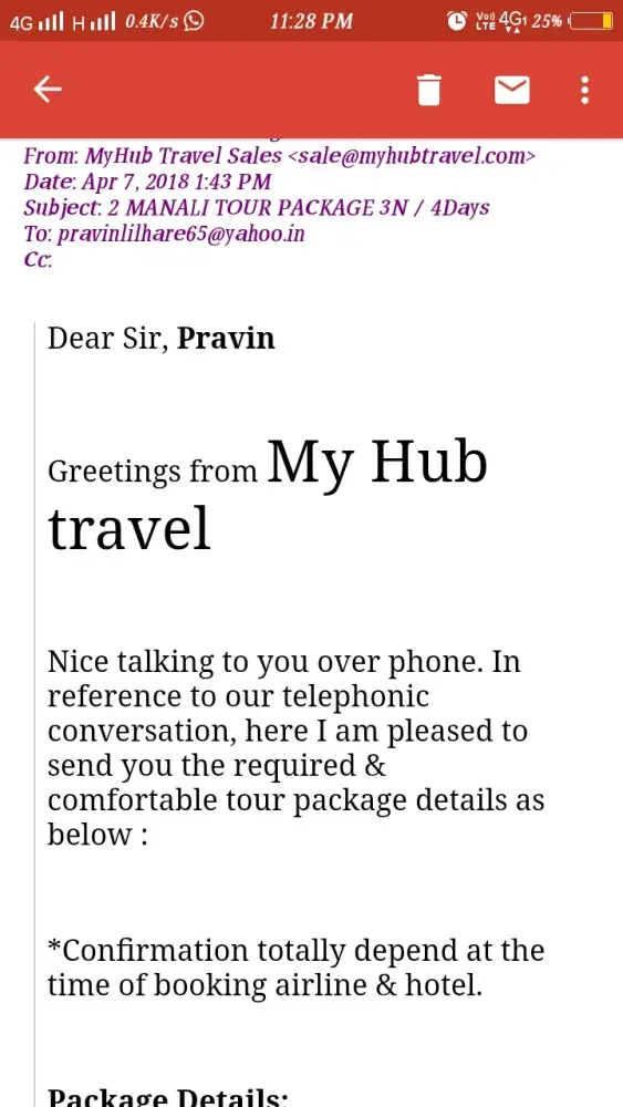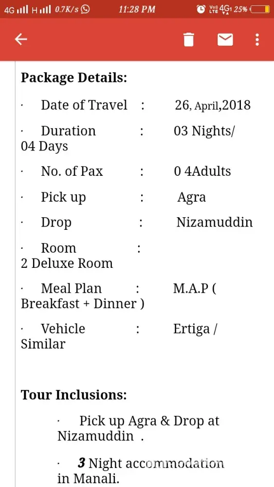 2nd Shock - Then my hub travel kahta hai aap Delhi aa jaye hum waha se aapko pickup karte Hai by travels, humne kaha Bhai humne package me to car bola jo aapne package mail me bhi Diya Hai.