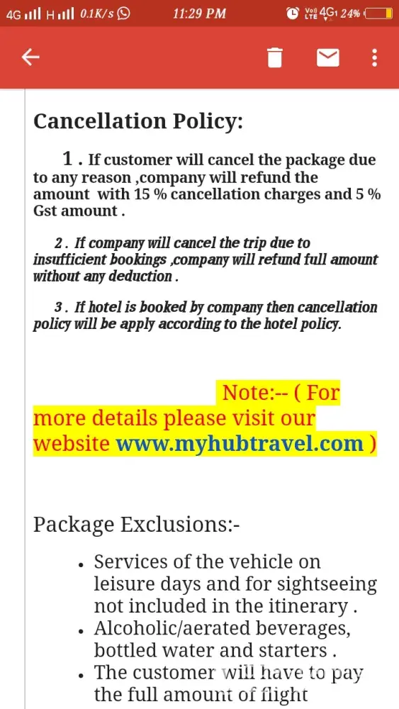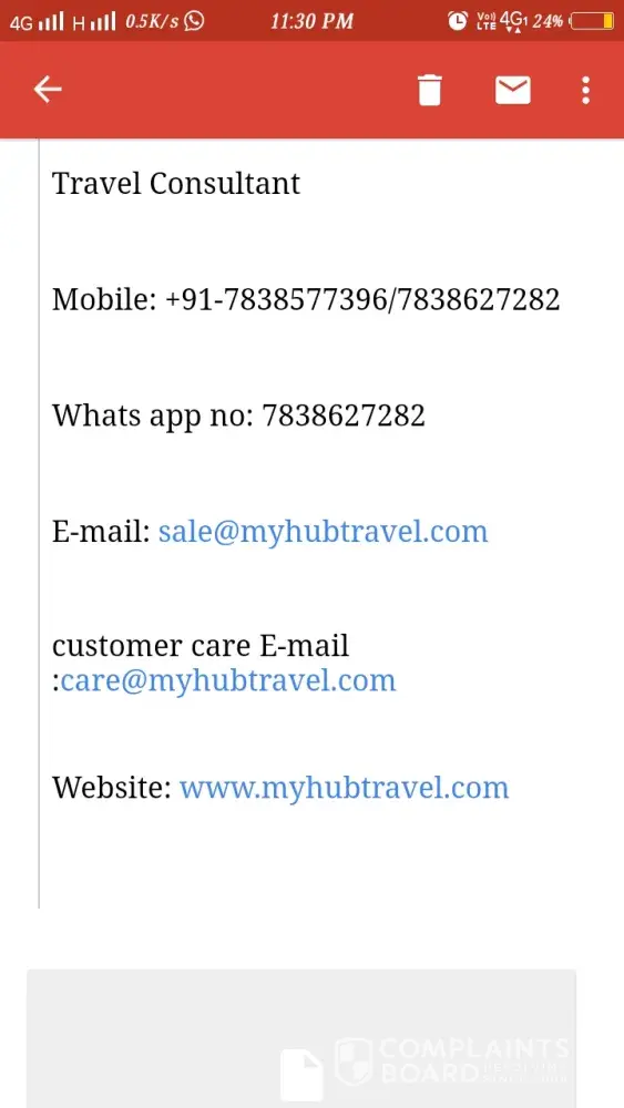Dear all customer please drop what's up msg to your friends circles regarding do not purchase any tour packages from My hub travel.