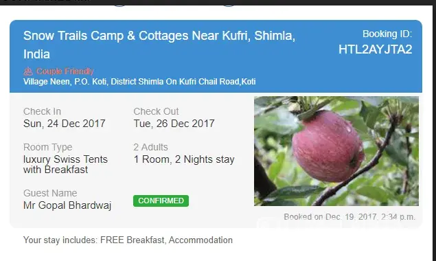 can anybody imagine when I got confirmation hotel. I got hotel confirmation on 15/02/2018 in evening near about 17:30hrs. after paying full amount for everything a month prior. Please be careful!