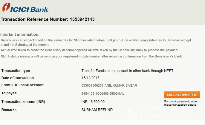 I received my refund amount 15, 000/- after deducting 3000/- from the total amount.
