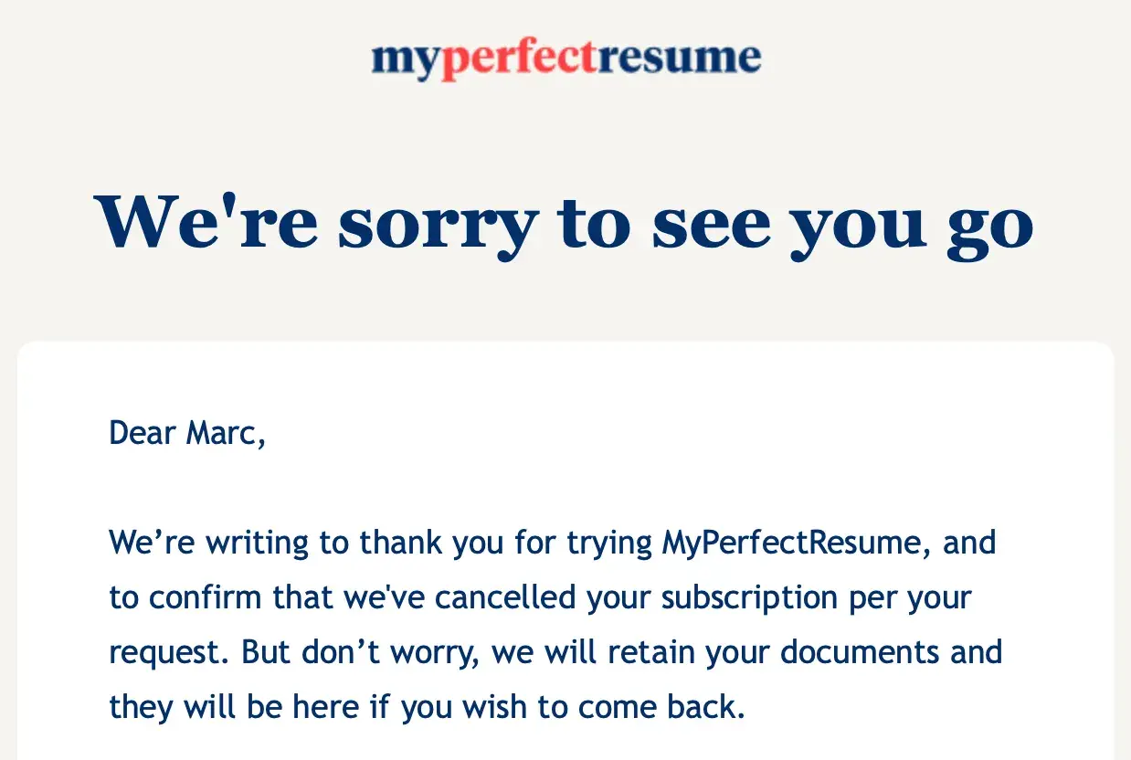 I was a monthly subscriber to MyPerfectResume.com since the summer of '22. I just recently canceled thier service on 10/25/22. I had to reach out to customer service again to ensure i received a cancellation comfirmation. Not to mention customer service tried to tell me there wasn't an account associated with my email/card despite having previous emails from the company regarding g a password reset. I was billed after I had canceled services with the company as well as after I'd received confirmation of said cancellation. After digging through my bank account history I'd noticed MyPerfectResume had billed me not just once, but twice and more throughout the months for I don't know what, but I never used the account after creating my initial resume. Each charge was posted at $23.95. Customer service hasn't emailed me back since the incident. I've never dealt with this level of unprofessionalism or fraud so blatantly.