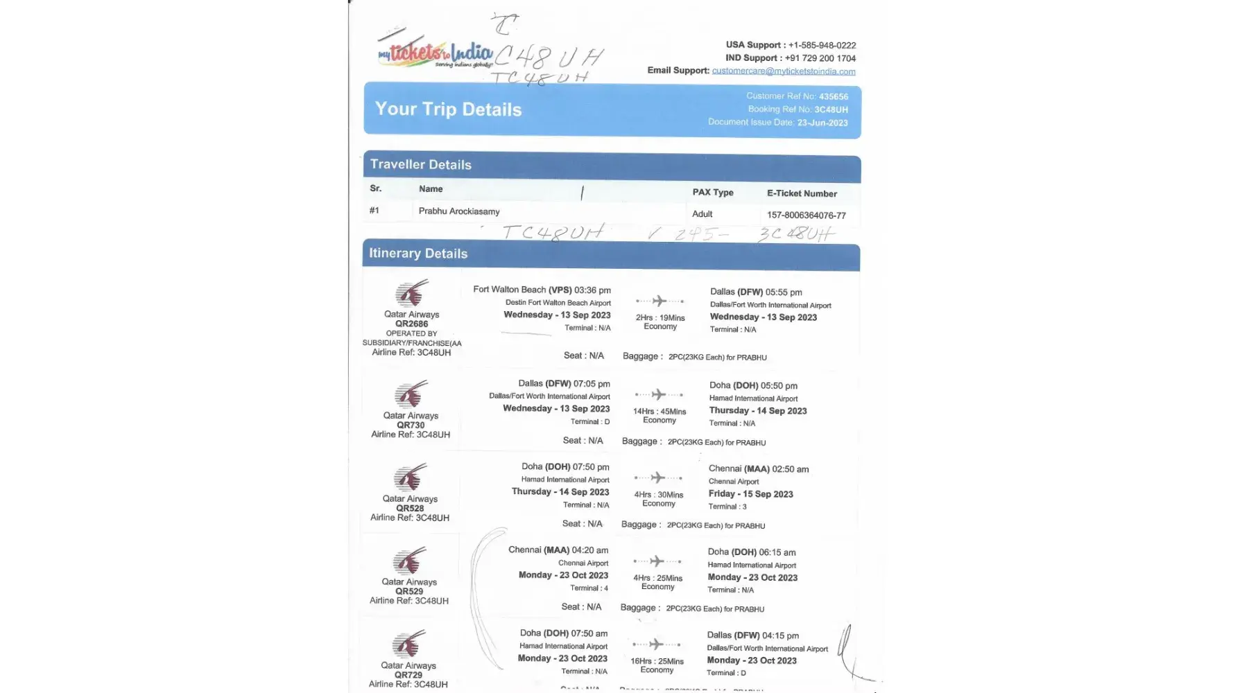Below is the itinerary that I received from Rupendra at MyticketstoIndia regarding our trip to India. I am very disappointed about how MyticketstoIndia arranged the trip and not disclosing the limitations. We faced the following three issues on our return trip: