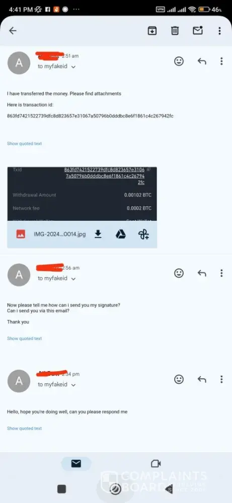 I paid with bitcoin a couple days ago and emailed them multiple times and haven’t received anything back from them. I have contacted with my order number, name, address, and bitcoin address. My order number is Crawford-[protected] . I would appreciate an email back from the company.