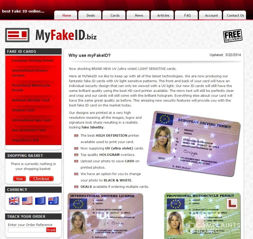 I have ordered 3 IDs from MyFakeID.biz 3 weeks ago. Money sent, no order has been received as of yet. I have sent multiple emails (to [protected]@myfakeid.biz and via website's contact form). No reply has been received as of yet. MyFakeID.biz is a scam! Beware! Never send any money, you will never get your order.