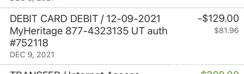 I find this dishonest that due to one account blocking them access they have taken form another account which they obviously had details of. I asked My Heritage to take my bank deails off their system 2 years ago.
