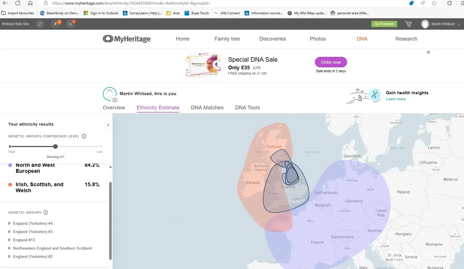 My DNA test results have come back and show that I am 84.2% North and Western Europe and 15.8% Irish Scottish and Welsh with no further breakdown. This is very disappointing and has in no way helped understand my historic background (e.g. there are nearly 300 groups in North and Western Europe). The website shows a further breakdown in the example on the website and does not allow me to raise a case directly with them so I am unable to contact them.