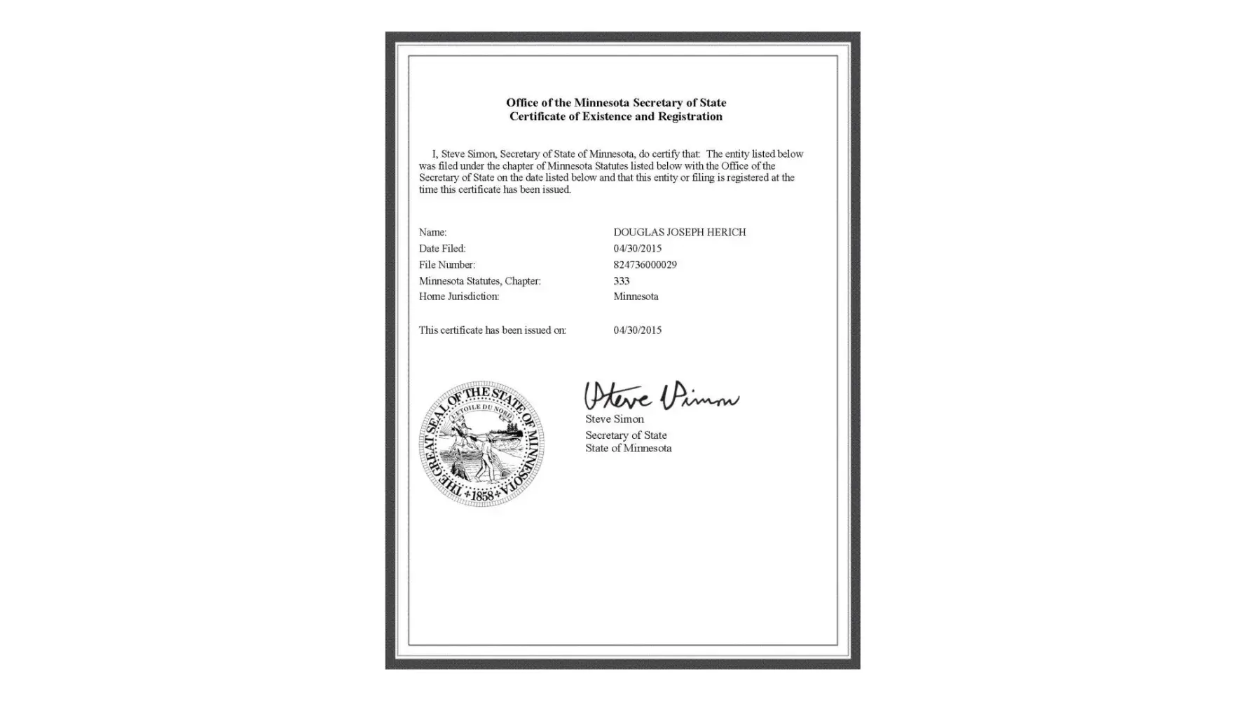 No contract exists between the Minnesota Assumed Name business type I operate and control as Nameholder, and your agency. The information and ALL data contained on the website linked above to the legal name shown is to be destroyed and the link removed. ALL DATA IS INVALID AND INCORRECT.