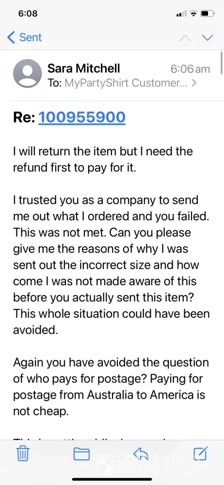 Don’t waste your money on the website www.mypartyshirt.com. I placed the order and received two t-shirts, but I have bought 5 from them. The size was small for me. I contacted the seller and asked what I needed to do then. He told that I needed to wait for the order, but after all small t-shirts must be send back. I did as told me, but still no news from the seller. When will I get my money back?