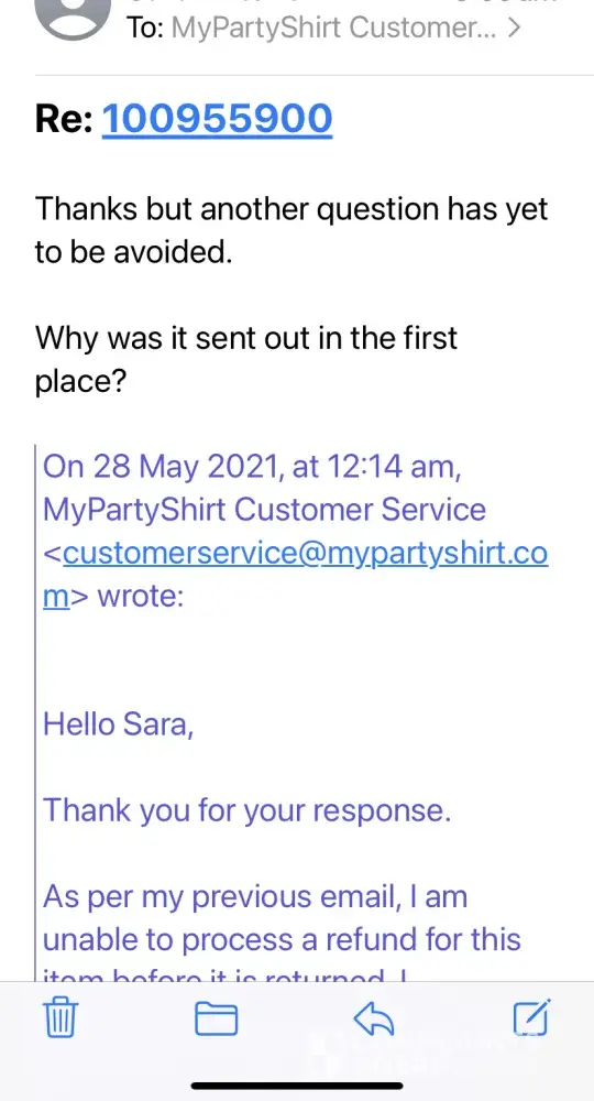 - Despite a high level of trust, our investigation found issues with MyPartyShirt.com's service, including poor customer service, lack of accountability, and responsibility to resolve complaints. Customers may face long wait times for responses, receive generic or unhelpful answers or no response at all. Only 33% of 0 complaints were resolved.