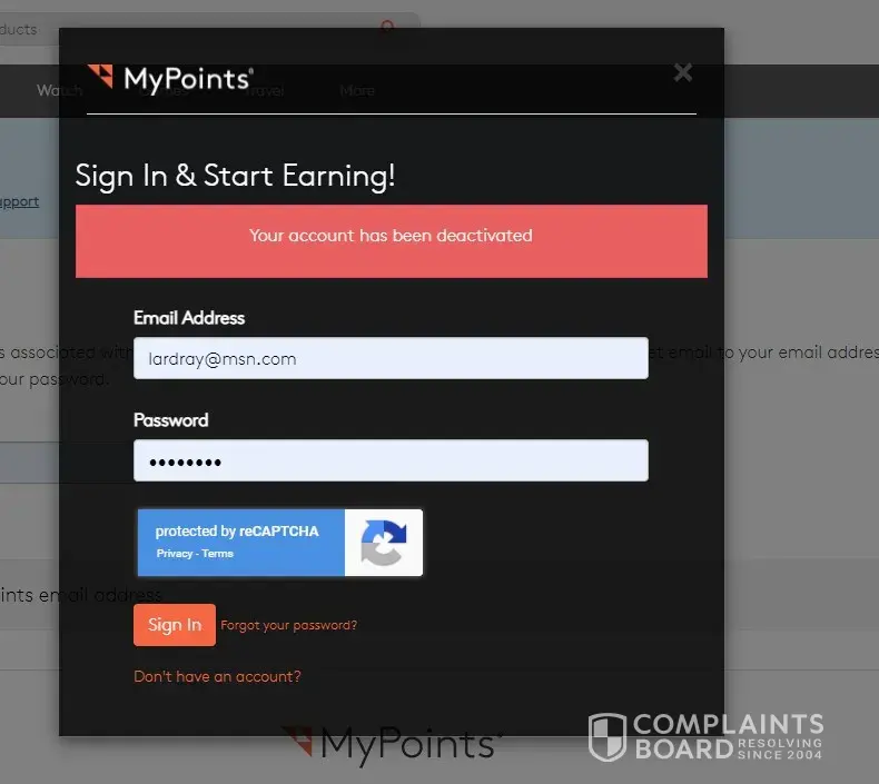 MyPoints deactivated my account after I tried to redeem points