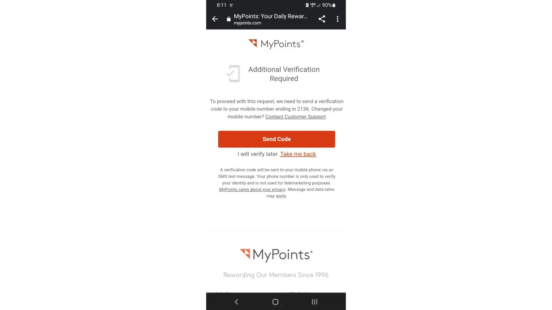 And later on I received this email: We apologize for the the misunderstanding. Please rest assured we are not requesting this information to scam or cheat our members. Our system has detected a non-residential IP and we will need to verify you as the account holder. This verification is to ensure the security of our members and the MyPoints community. We understand your privacy is very important to you and we agree. Your points and pending prizes will remain here if in the event you decide to cooperate with the verification. We apologize for this one-time inconvenience.