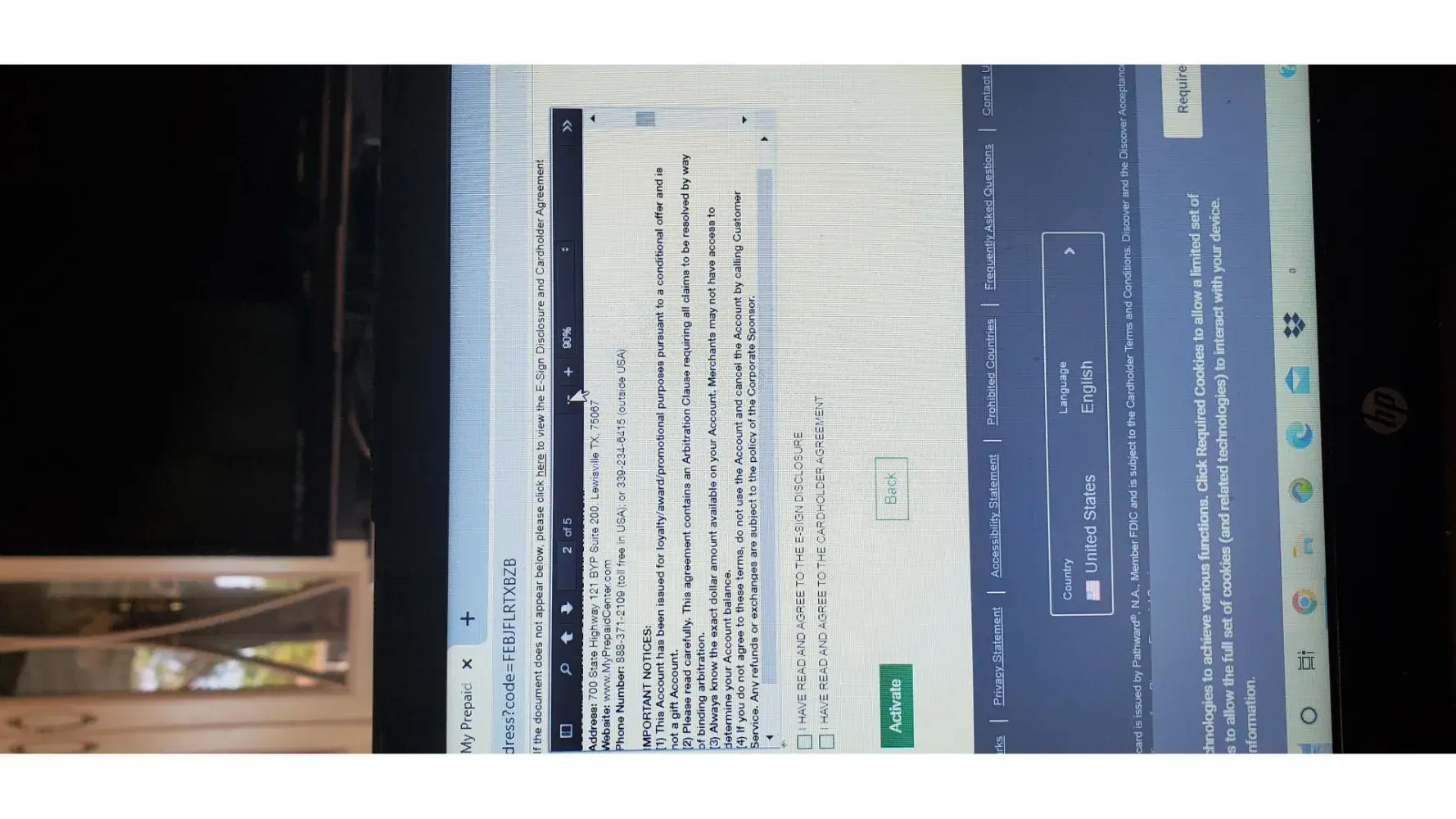 Purchased 4 tires from Tire Store. Received two prepaid debit cards as customer reward for tire purchase in the amount of $100 & $50 and upon receipt I followed the activation instructions on the debit card. Upon accessing the web site (MyPrepaidCenter.com - ACTIVATION REQUIRED) a blank page comes up. I attempted to access the site multiple time with same results, ALSO tried calling to Activate with message saying the sight it down.
