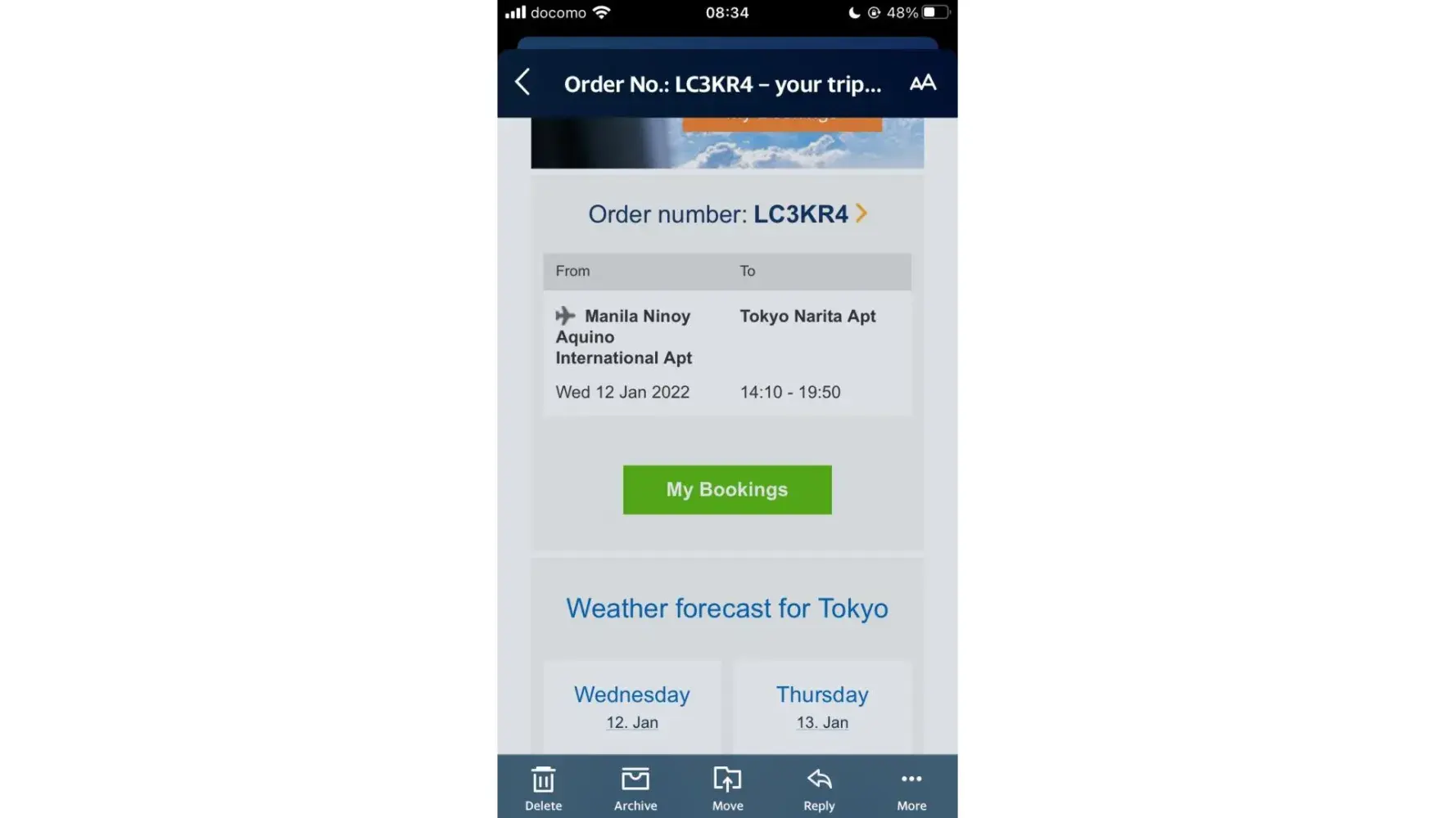 I had booked a flight from Lulea, Sweden to Düsseldorf, Germany on the 23rd of January 2022, booking number LFJ3OH.