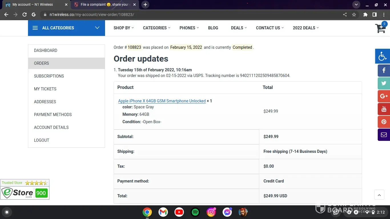 Desired outcome: i either want my refund of 250$ or i want the phone that i bought to get shipped, because thats messed up.