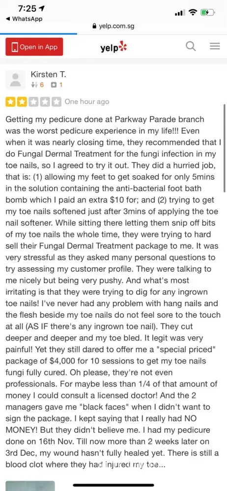 foot scrub overpriced at nail Palace sembawang shopping centre