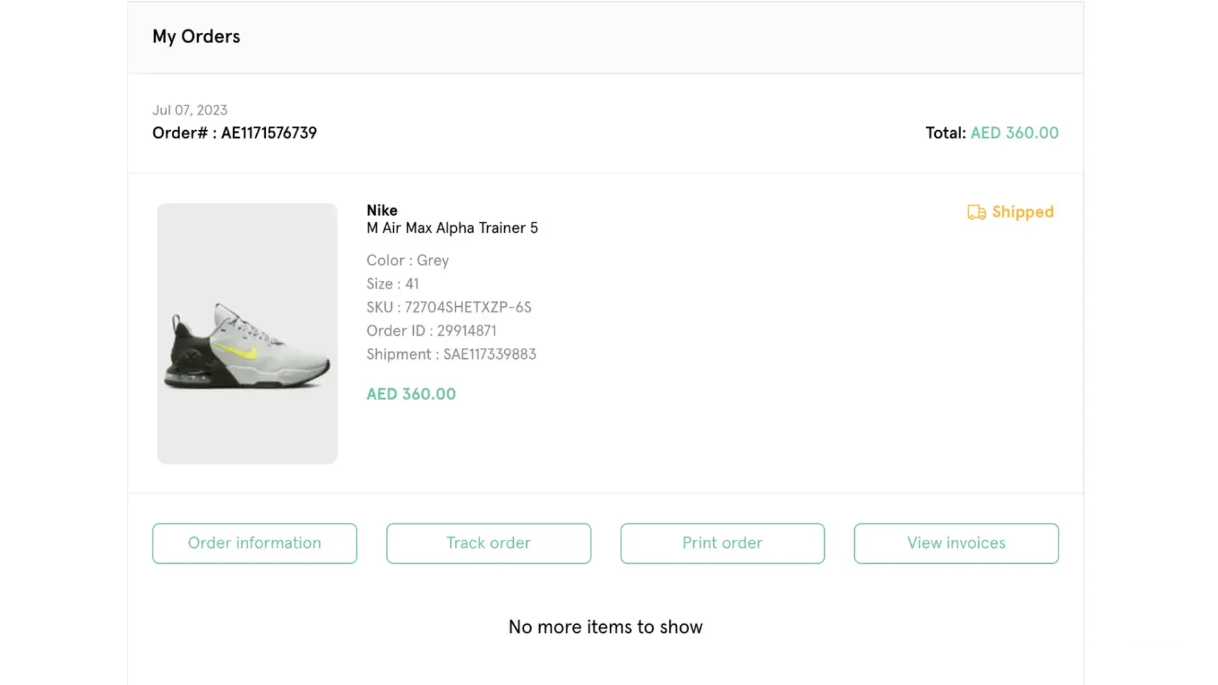July 7, 2023 I ordered online a Nike shoes. Delivery date (1-2 day if its in Dubai)