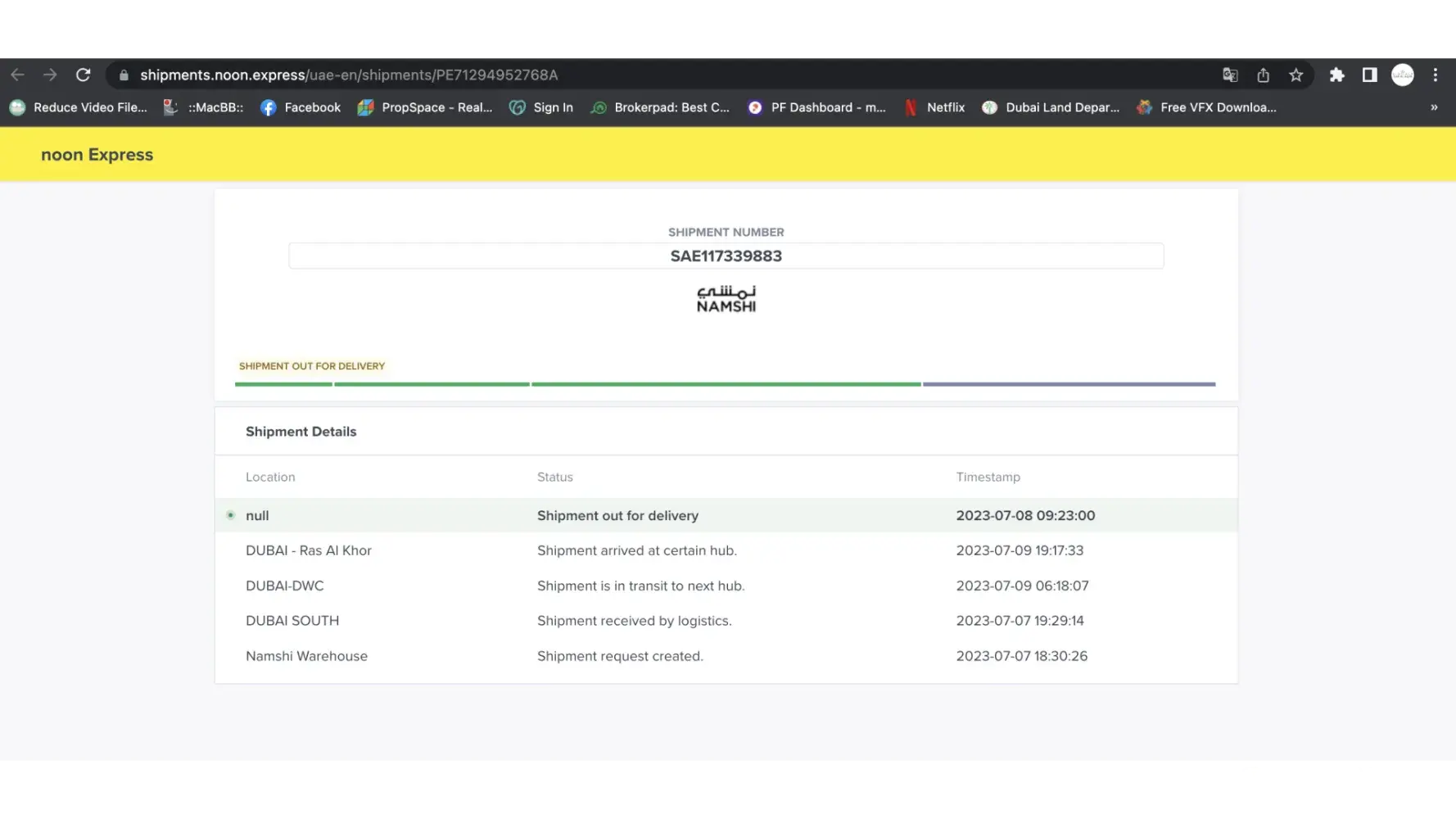 Been calling Namshi customer service daily and response is they will escalate the matter to their logistics partners Noon express (as per Namshi shipment is at Noon express warehouse) and when I ask them for Noon express contact details they mention they cannot provide the same.