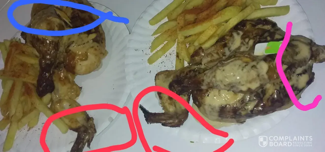 Not happy with the service we received because it's now twice that we have been given an incorrect order. Just today we ordered a full chicken and we specifically said they shouldn't cut it and they actually cut it. To our surprise the chicken pieces don't even make up a full chicken, so we not happy with the service because this is the 2nd we received such a bad service