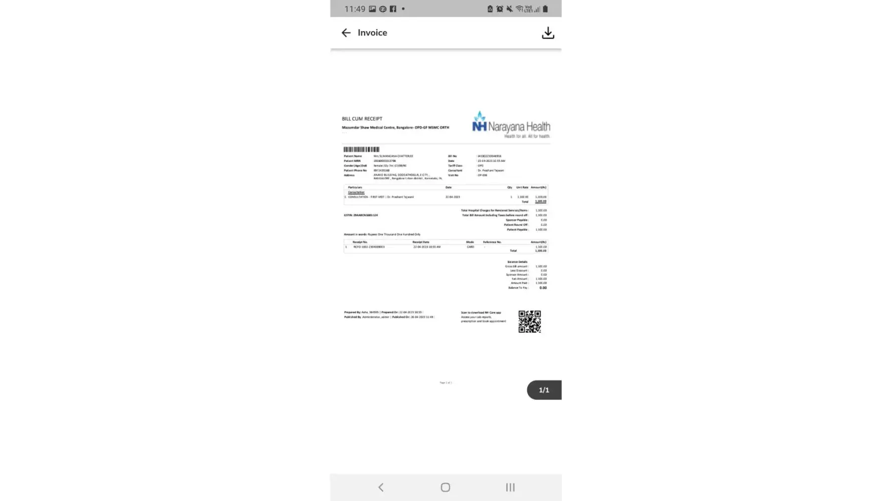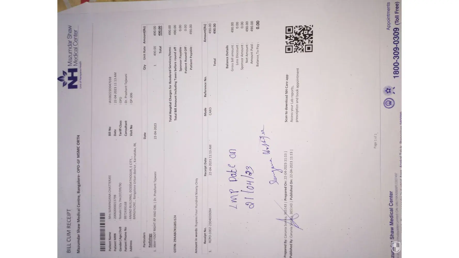 Just for a minor foot injury, they want want to bill customer. Money making business nothing more. I tried connecting with Narayana on this but no action yet and they are least bothered to resolve patient queries post billed.