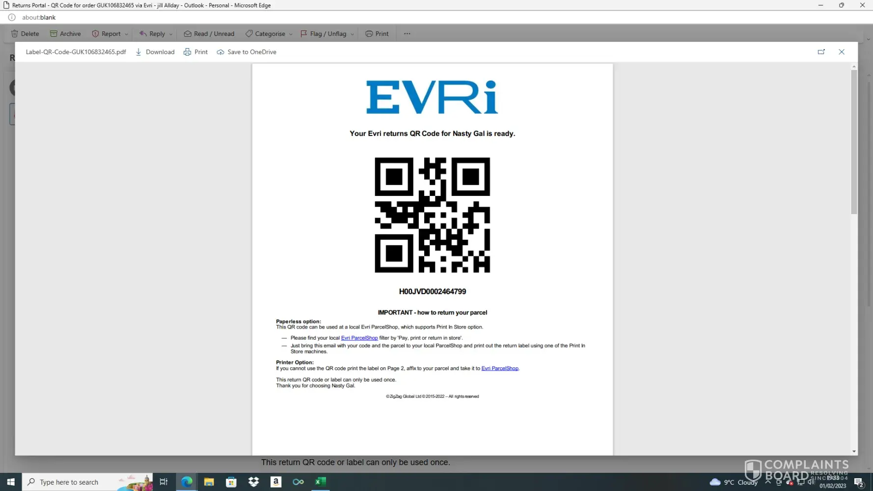 EVRI QR code : H00JVD0002464799