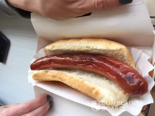 I’m a truck driver and I was making a delivery at Pier 39… decided to stop for a hot dog. First, I have never in all my 71 years seen a hot dog that small. It looked like it was made specifically for a four-year-old. Second of all, if you’re not offering sauerkraut and onions; what is the point of having the stand. And last but not least; it made me sick, and I never get sick. I think I’ve made about four complaints about restaurants in my life, and you guys just made the list. Sorry to bother you