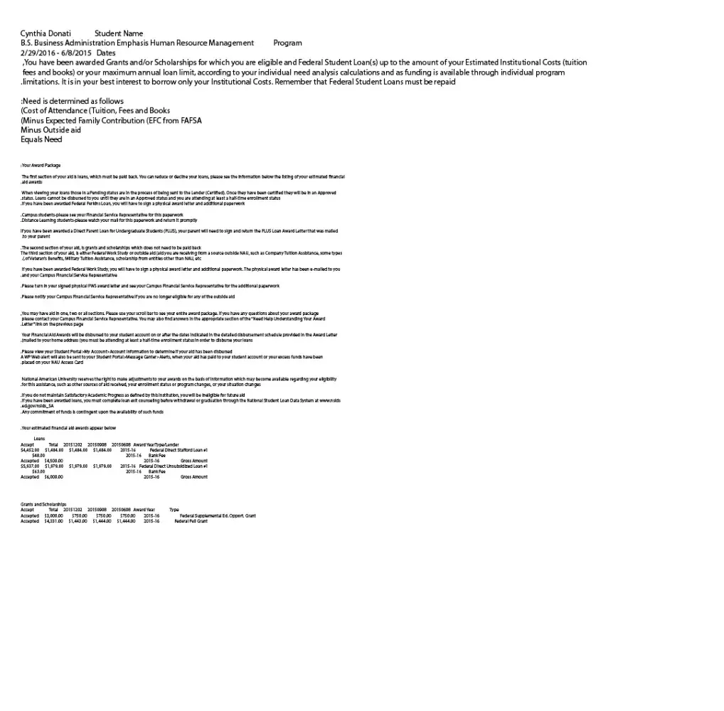 I enrolled at National American University in a 4 year Bachelor Degree program as a Paralegal. My first semester I had no problems at all and enjoyed the classes and teachers. Since then I have had nothing but problems concerning the financial aid department and with trying to disput one of my grades. I had received a C as my final grade in one of my...