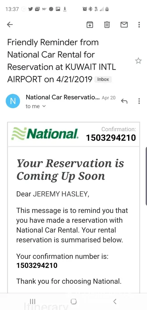 I am complaining about car that I rented from National Car. Below are the complete details: