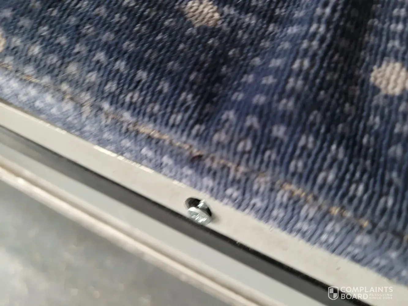 I got on the 1204 bus from lolly Lane today the bus driver pulled away sharply b4 I coukd seat myself at the back of the bus causing me lose balance and catch my leg on a screw that was not flush and so ripping my leggings which I only purchased last Friday I have proof of receipt for these at home and picture evidence of the screw and damage caused