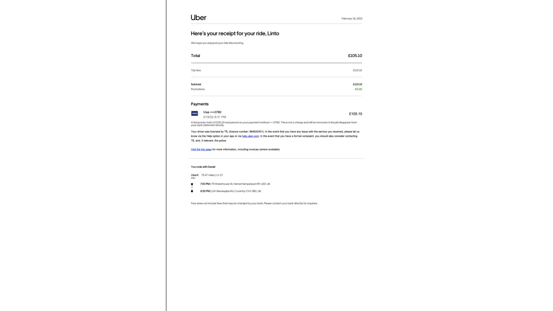 I was travelling from Liverpool to Manchester to take a flight to Norway where I would meet my parents (from Canada) for a major wedding celebration. So as you can imagine at this point I was stressed and VERY confused. I could not see a phone number to speak to someone at that time of the night. I checked for other options (bus, train and other bus) to get to the airport or talk to a National Express agent however everything was closed. I then decided to try and catch up with the bus by using an Uber however I could see from your App that the bus had already left Edge Lane at that time and I had no way of contacting the company or the driver. This Uber cost me £14.97 (please see pdf: “6 Uber 1 receiptâ€). However this Uber driver put me in a very vulnerable position as it was late at night and he jeopardized my safety, a direct consequence of the fact that the National Express bus left early and without me. As the Uber driver had stopped at Edge Lane and Queen Street (your last bus stop before Manchester airport) he told me he would drive me to the airport. He offered to drive me himself and wanted me to pay him directly through direct debit but I did not want to compromise my safety and drive in an unregistered ride with an Uber driver. But before I could get out of the car and decline his offer he started to drive in the direction of the airport and got onto the motorway. I was becoming more scared and stressed but I was able to get him to drop me off at the next motorway exit. Now with no place to get other public transportation options from that location and and at that time of night, I had to call another Uber driver (see pdf: “7 Uber 2 receiptâ€) which cost me a further £66.83.