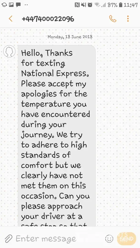 So I am very disappointed with the level of customer service from the National Express West Midlands.